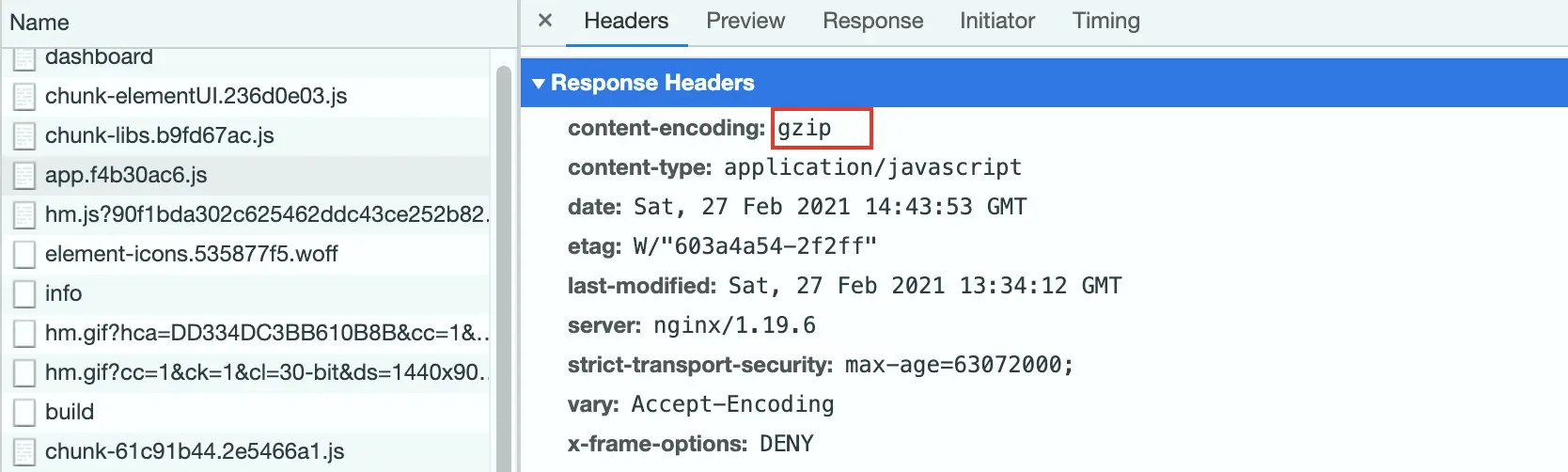 gzip on; gzip_min_length 1k; gzip_buffers 4 16k; gzip_comp_level 4; gzip_types text/css text/javascript application/javascript; gzip_disable "MSIE [1-6]\."; gzip_vary on; location / { root /usr/share/nginx/html/eladmin/dist; index index.html; try_files $uri $uri/ @router; proxy_set_header Host $host; proxy_set_header X-Real-IP $remote_addr; proxy_set_header X-Forwarded-For $proxy_add_x_forwarded_for; } location @router { rewrite ^.*$ /index.html last; } }